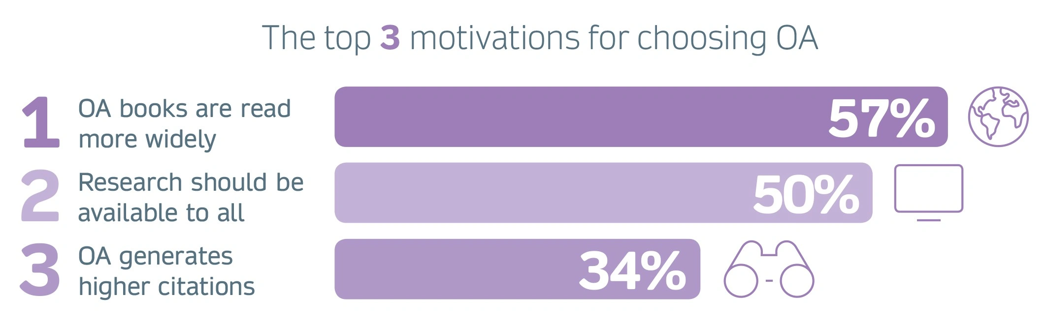 The survey looks at researchers' motivations for publishing a book, and analyses the parameters and key drivers which influence academics to publish OA or not. The white paper also identifies the major obstacles to OA publication which book authors still face: from a lack of awareness of OA publishing options and low funding, to concerns about how OA books are perceived.