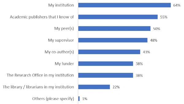 Figure 2: Q. ‘What kinds of advice and support for publishing have you received from your institution, if any?’